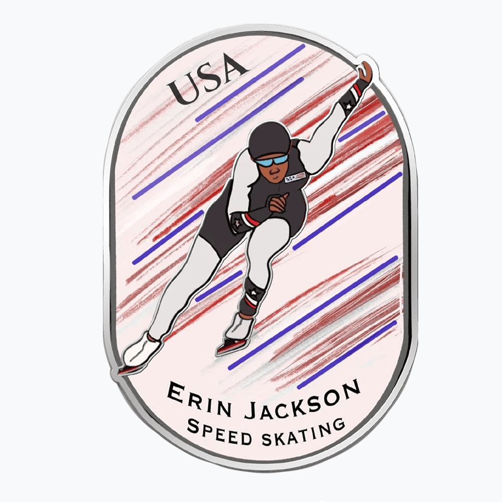 Whether you’re gearing up for the Olympics or adding to your pin collection, this Erin Jackson pin is a must-have piece of Olympic history.